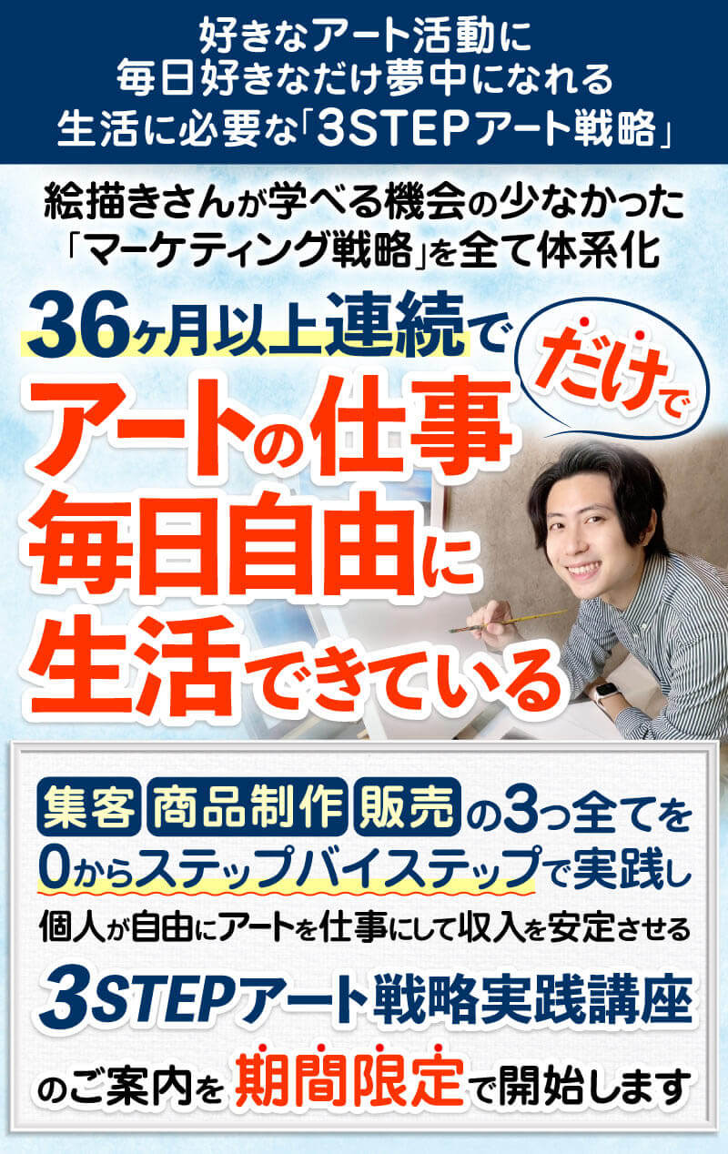 実際に僕がオンライン販売で、1週間に10枚以上の絵を販売した方法なので是非ご活用ください。