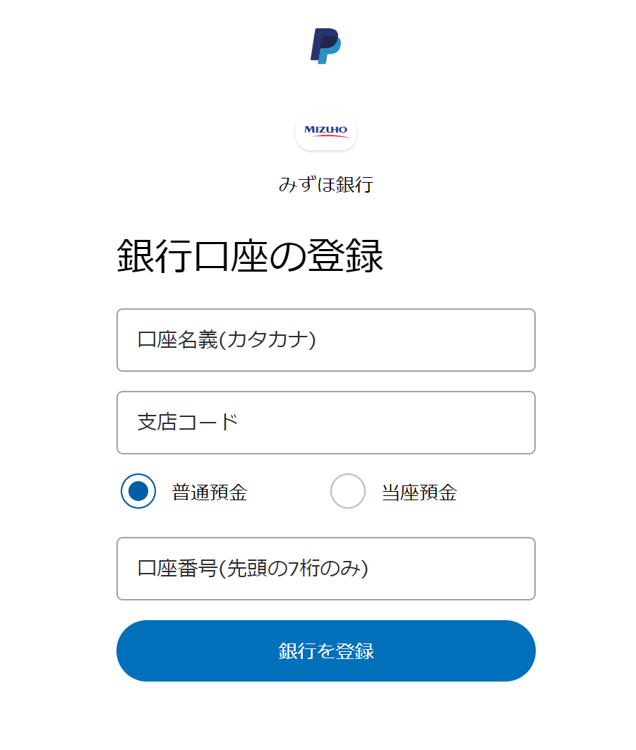 次に銀行口座の情報をご記入ください。