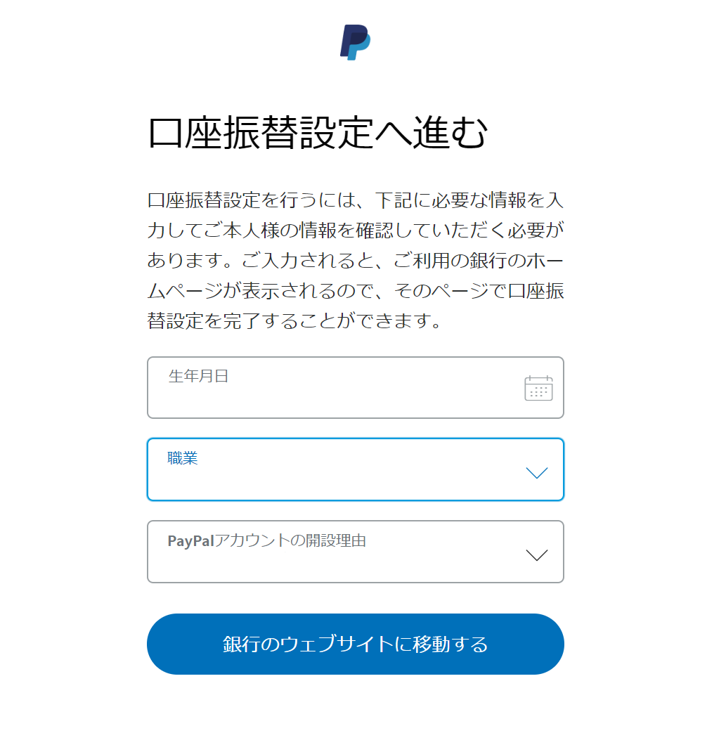 次に以下の情報を入力し、銀行のウェブサイトで操作を完了してください。