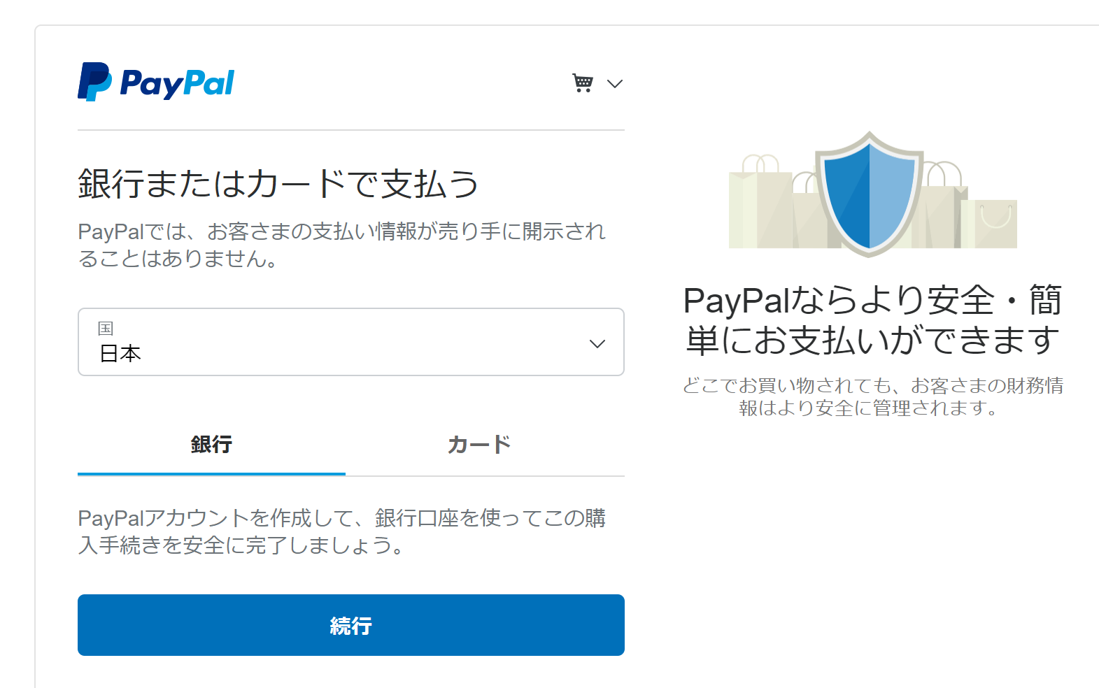 次に銀行が選択されていることを確認し、続行をクリックします。