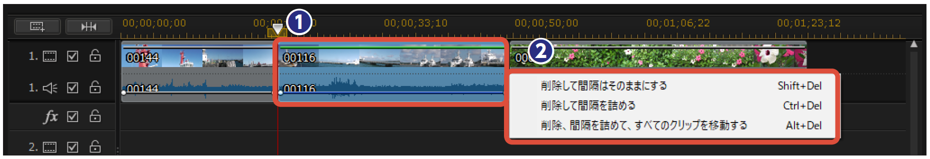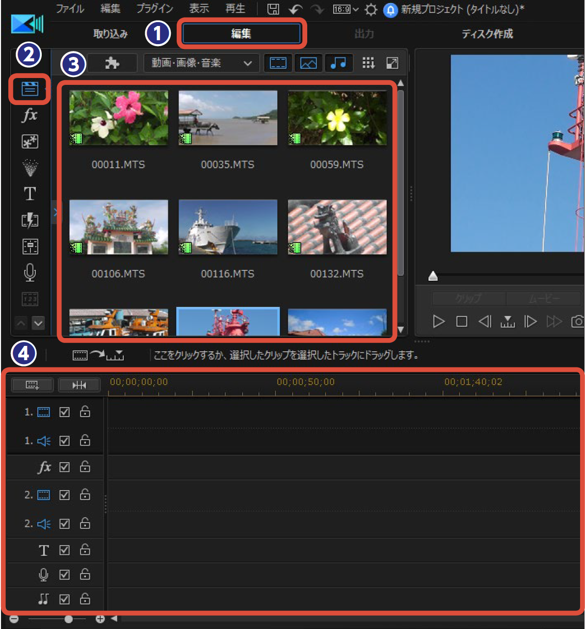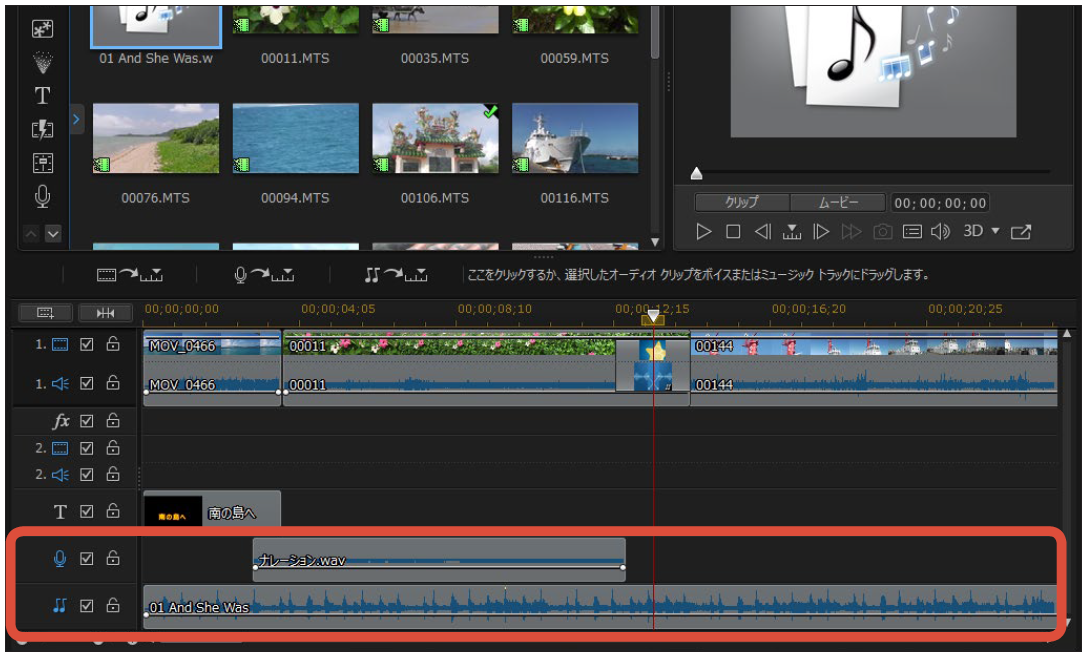 ・タイムラインへ動画配置
