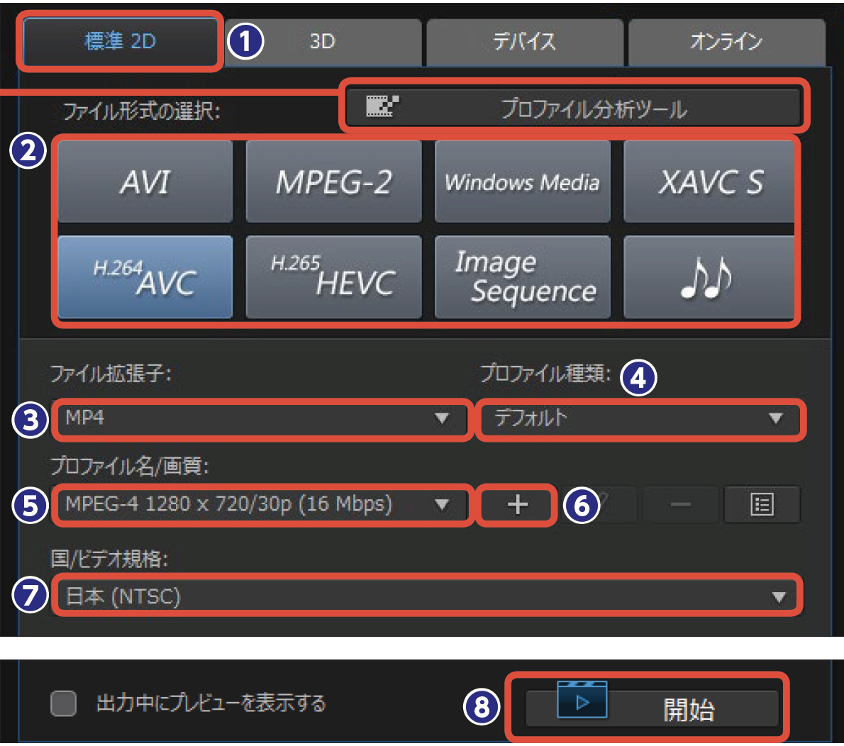 基本的に[標準 2D]で動画ファイルとして