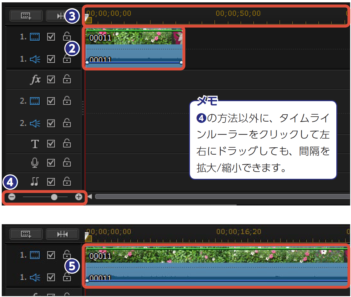 ❺タイムラインにタイトルクリップ