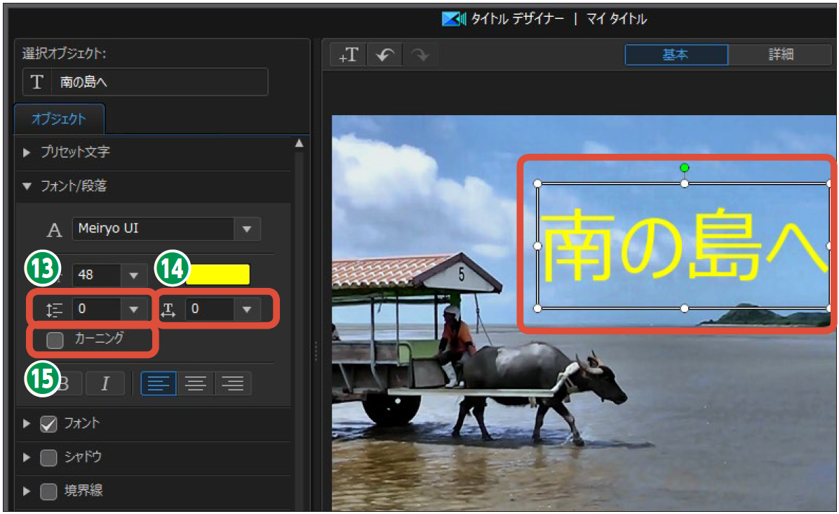 タイトルの文字と文字の間を調整します。