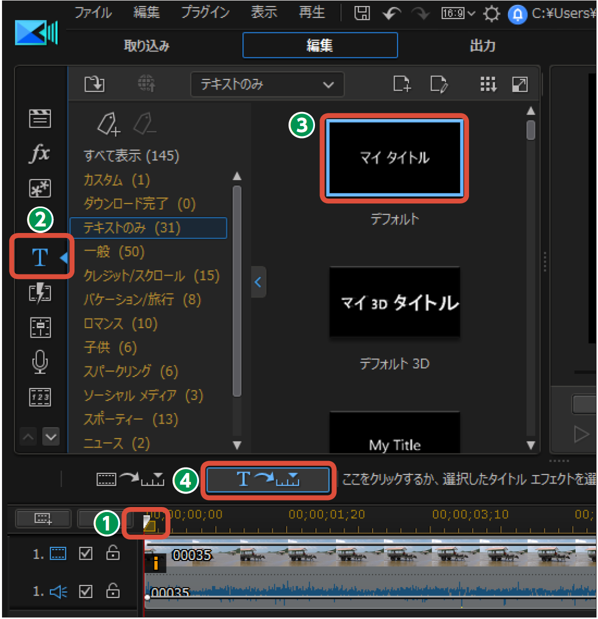 ❶タイトルを入力するにはタイムラ