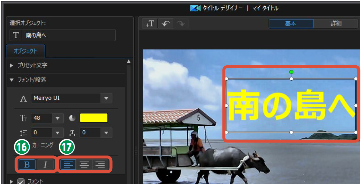 ⑰ここでは文字揃えを設定できます。