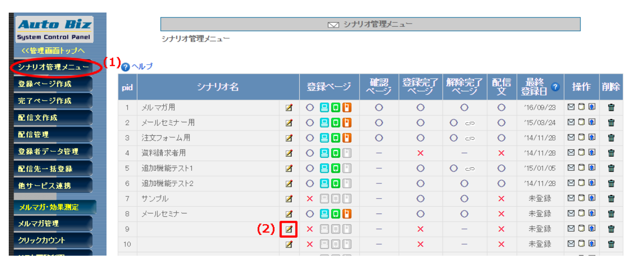 「シナリオ管理メニュー」をクリック