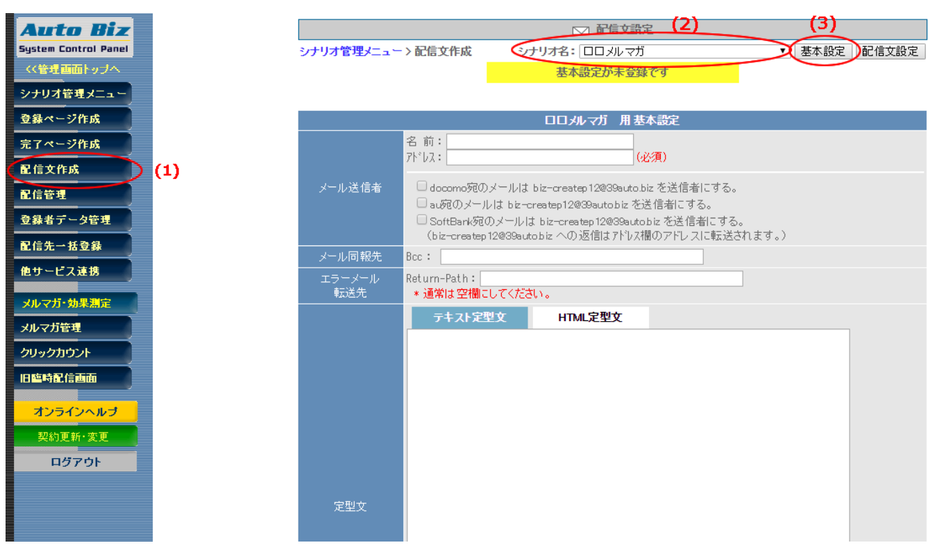 「基本設定」ボタンをクリック。(3)