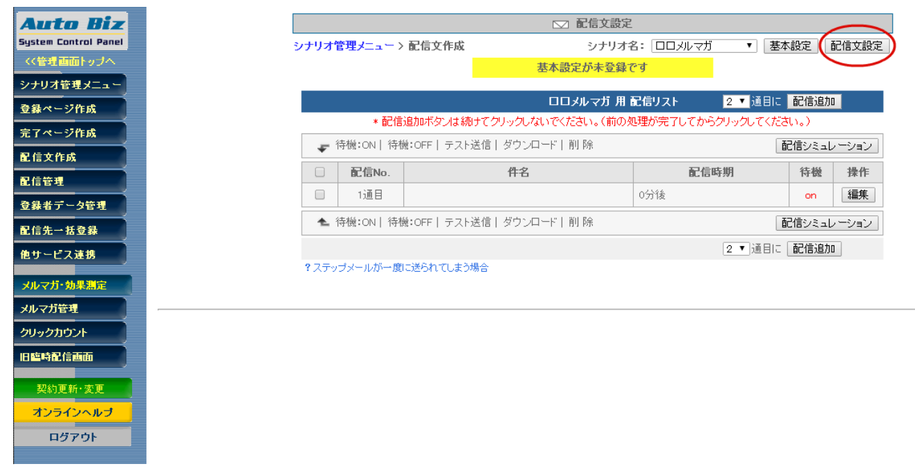 「配信文設定」をクリックします。