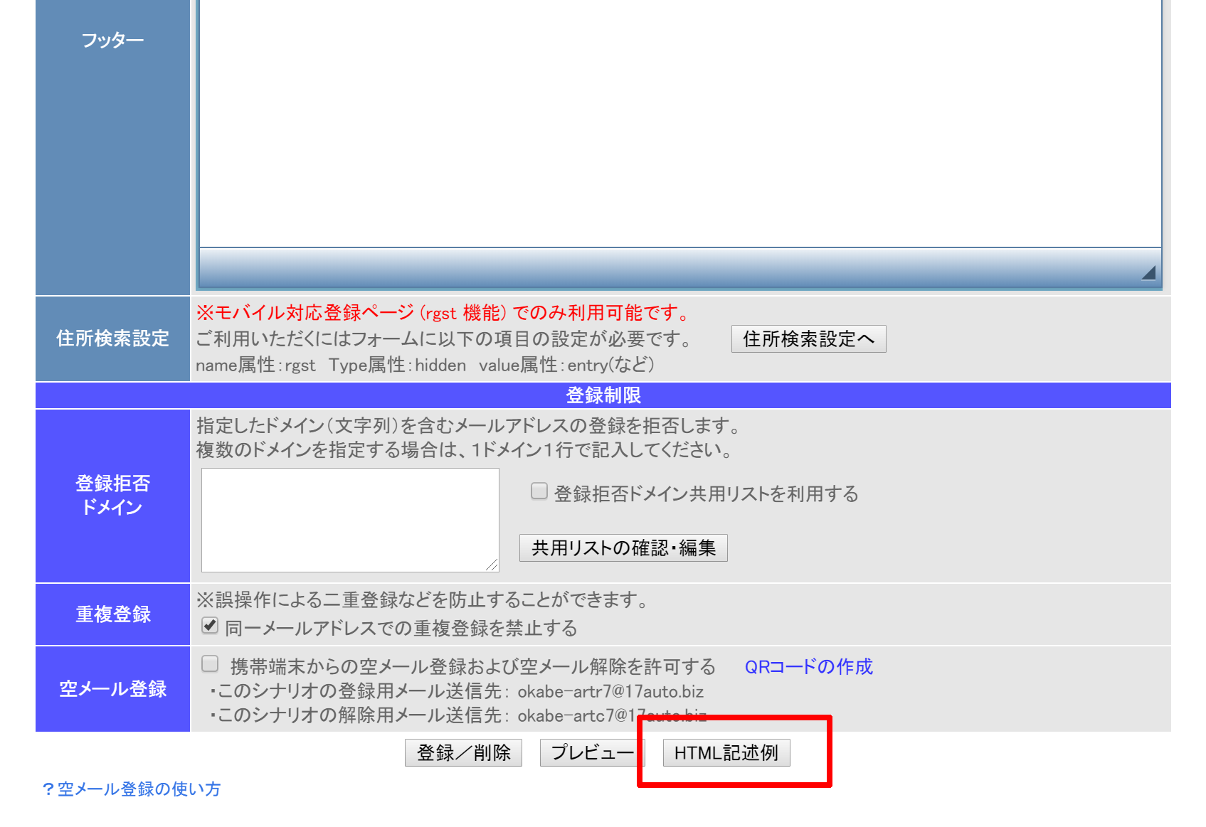 登録通知送信先にメールアドレスを