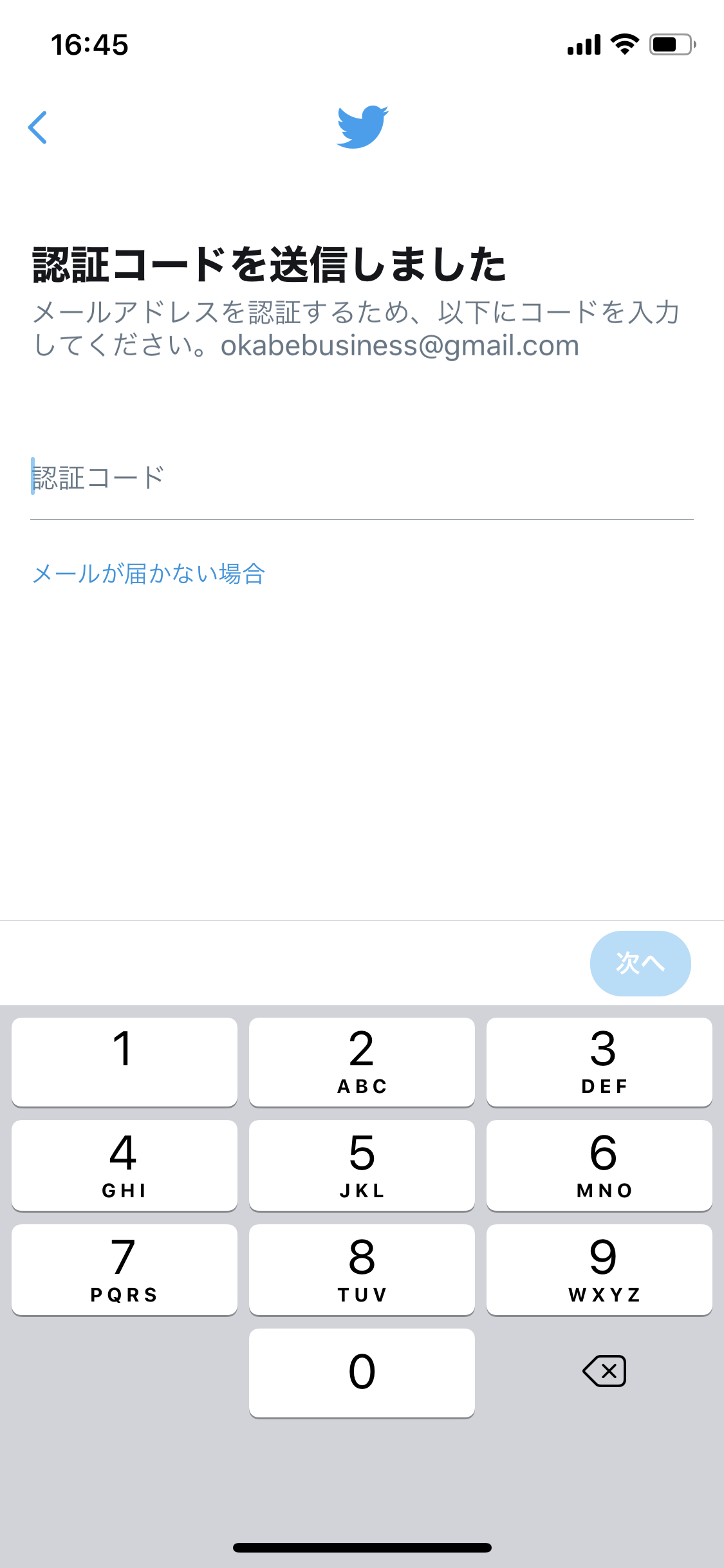 認証を完了することでツイッターの
