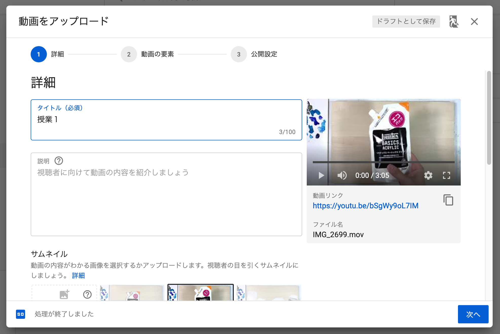 これで動画のアップロードは完了です。