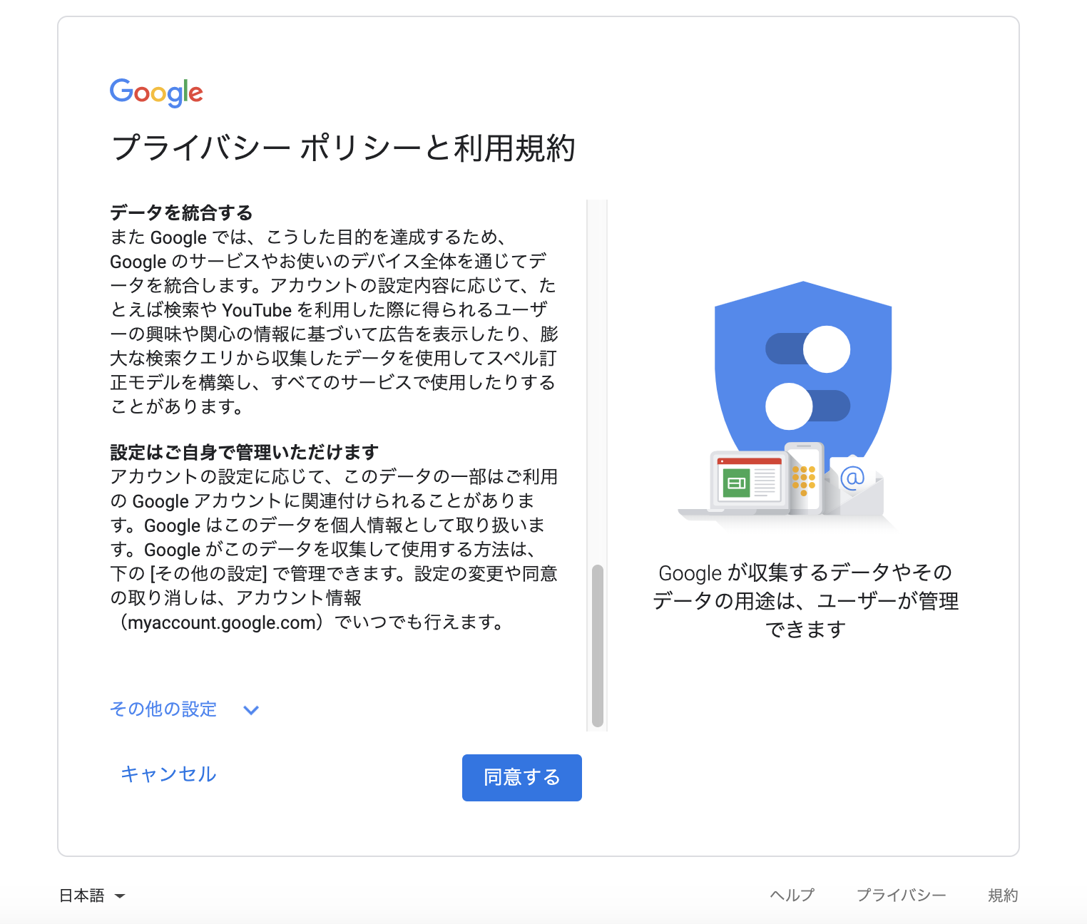 最後にプライバシーと利用規約に同意して