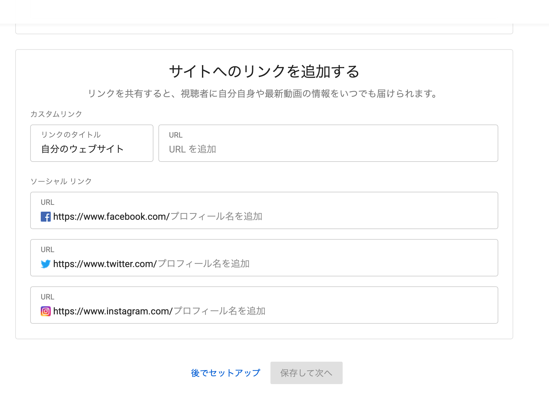 「後でセットアップ」とあるのでそこを