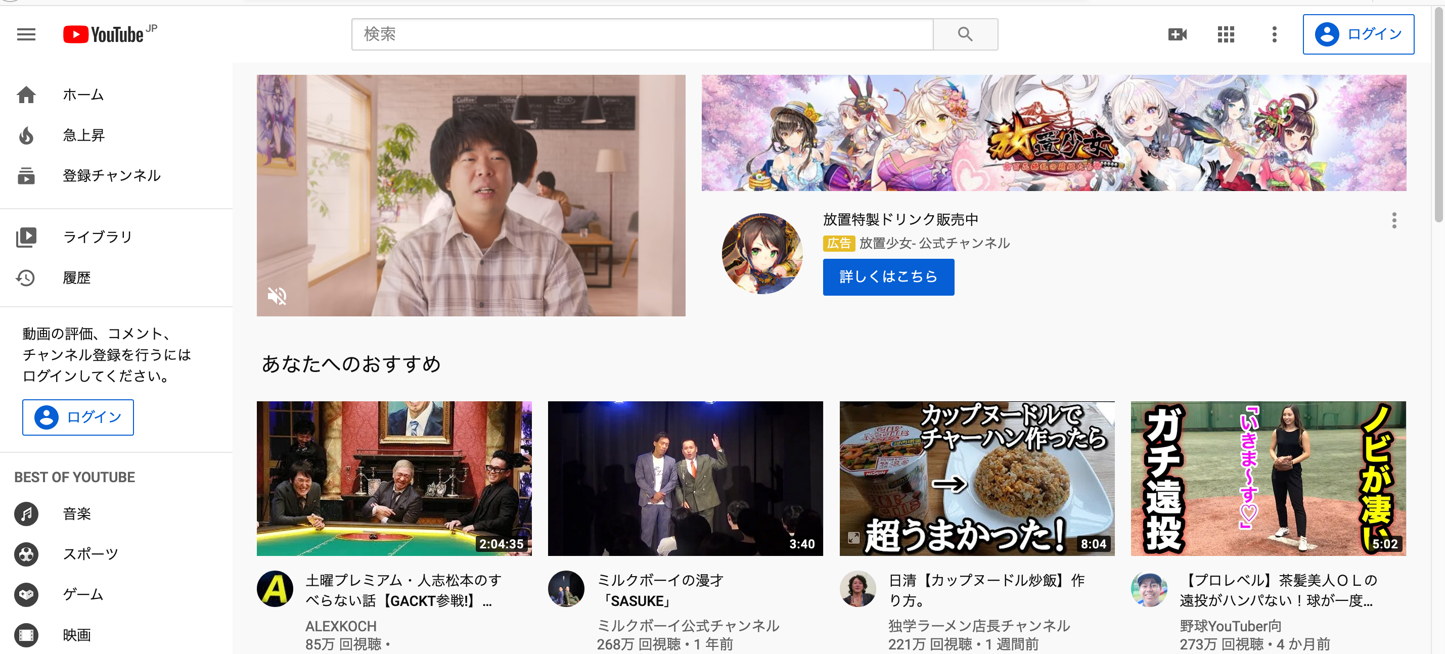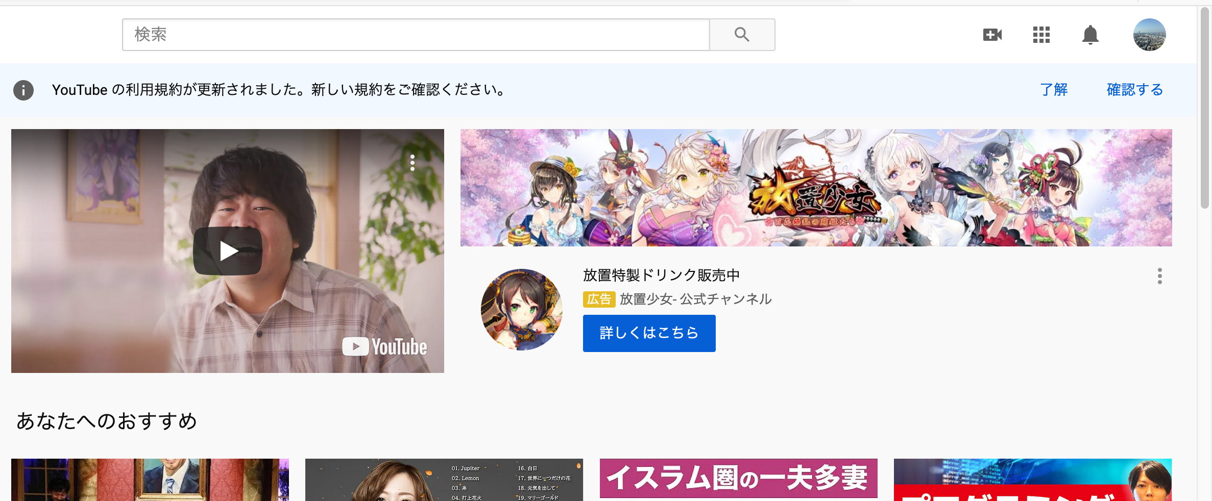 まずyoutubeにアクセスしてください。