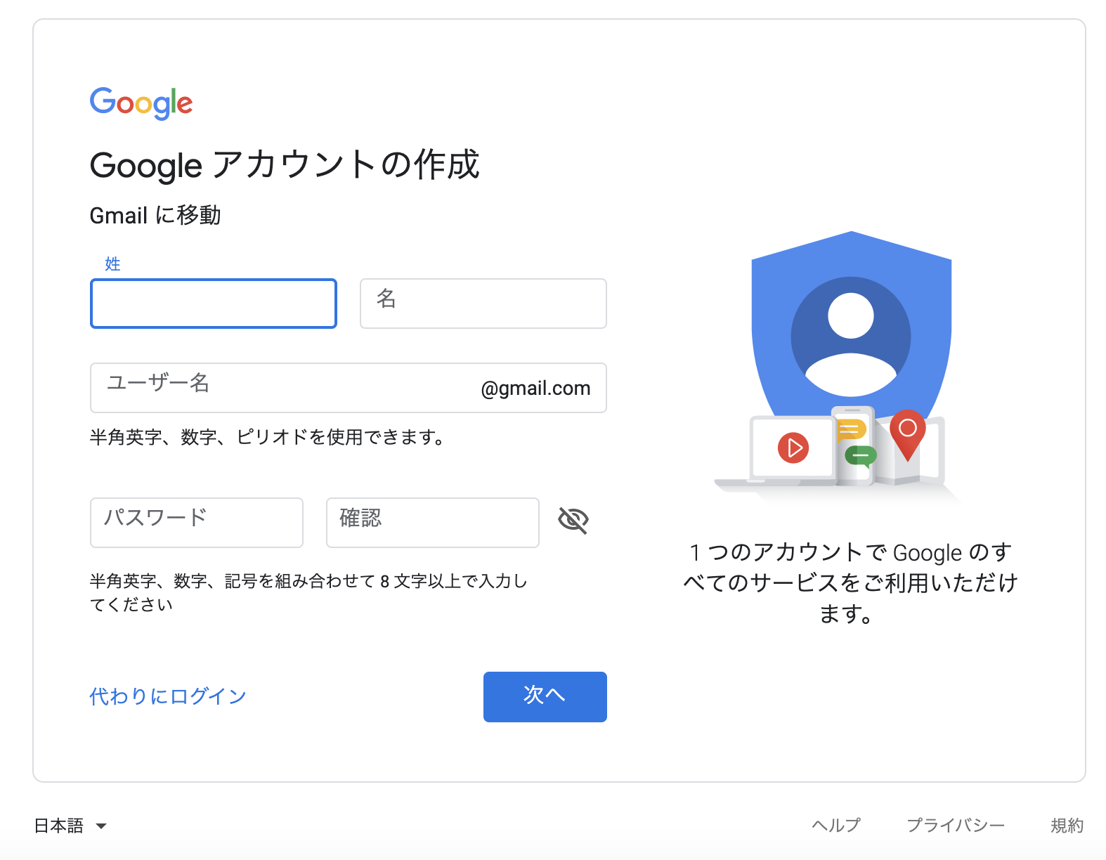 まずgoogleのアカウントを用意する