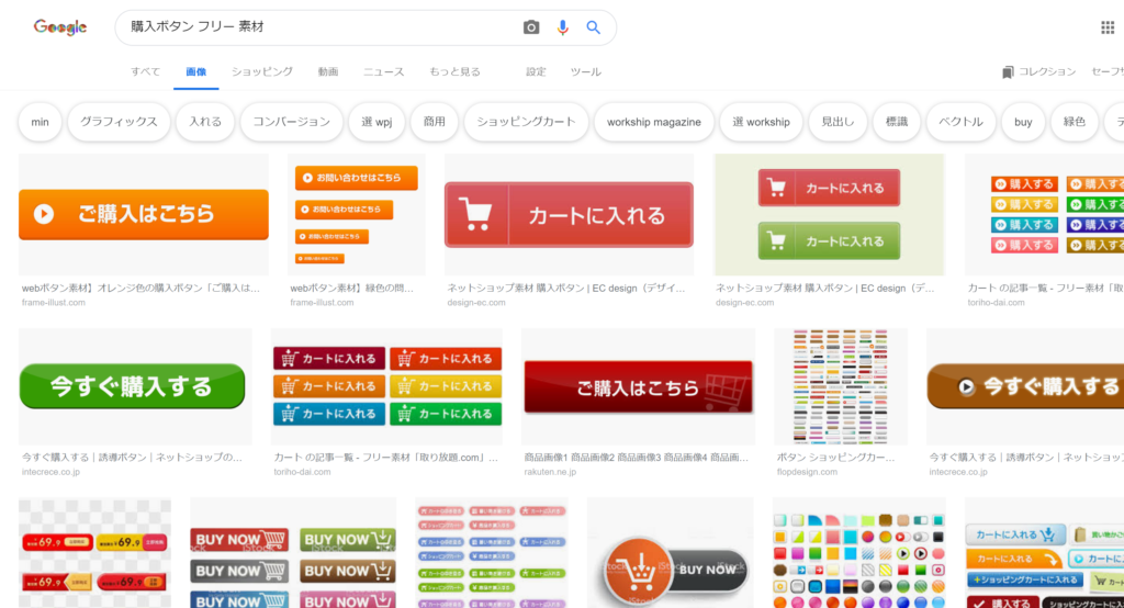 ↓のように「購入ボタン フリー素材」