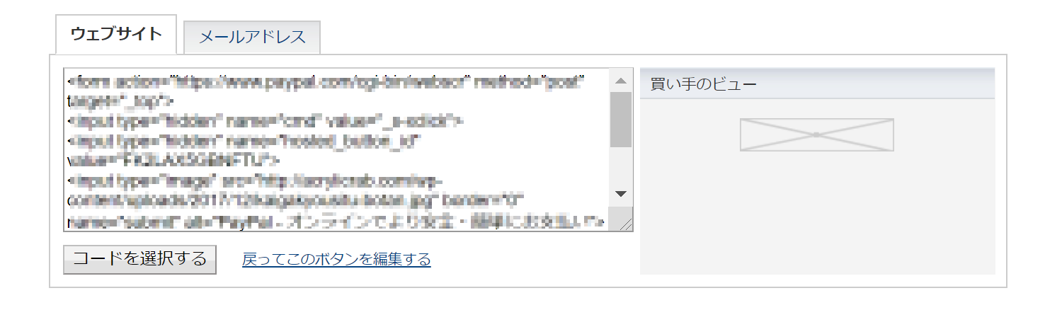 先ほどのペイパルのボタン編集画面に