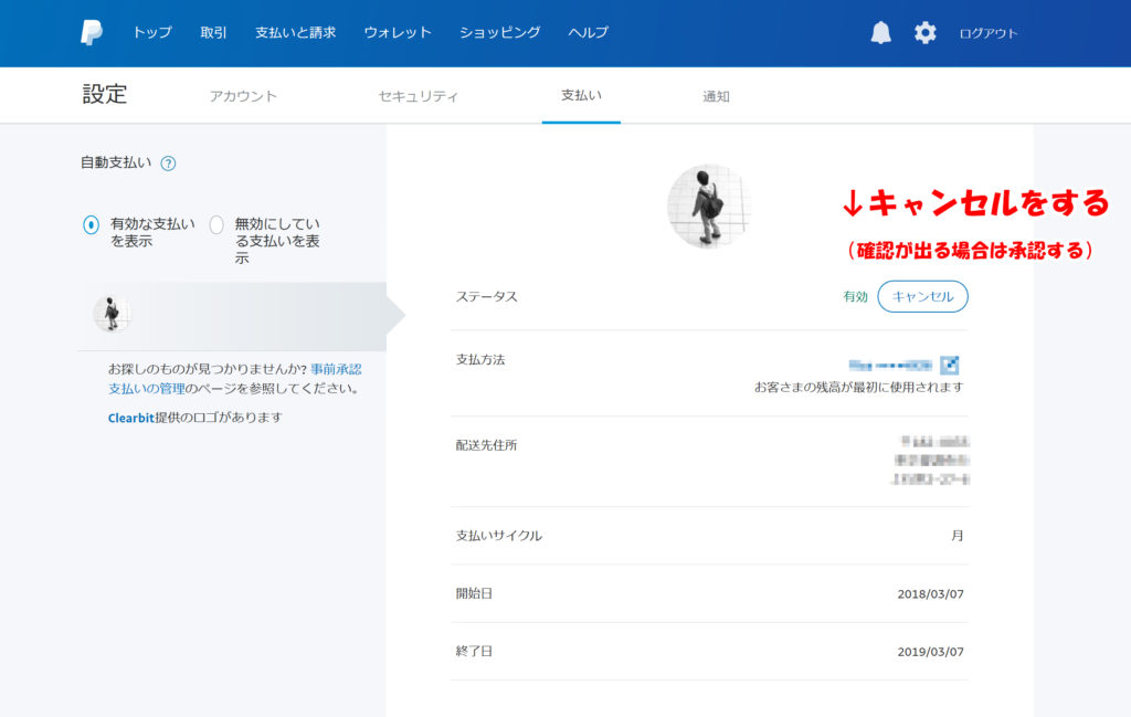 支払いステータスが有効になっているので