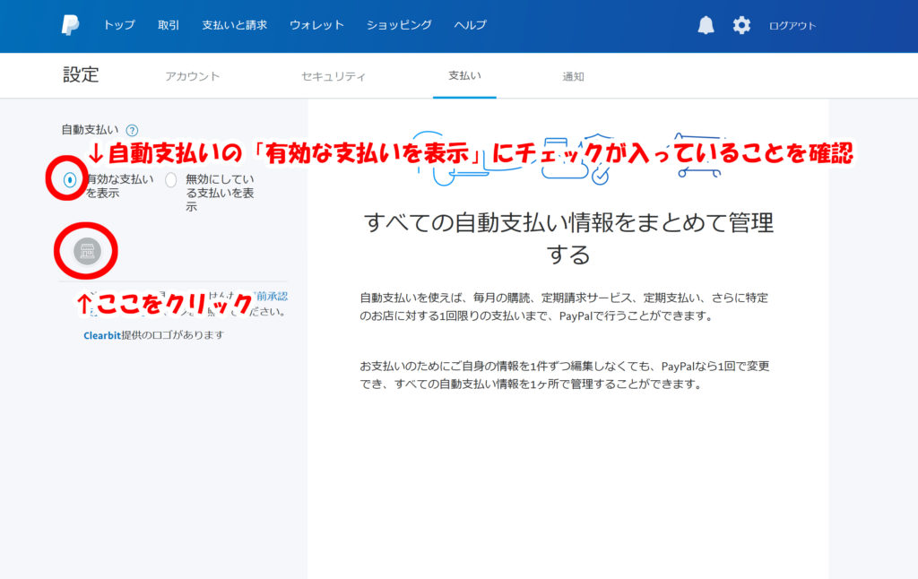 自動支払いの